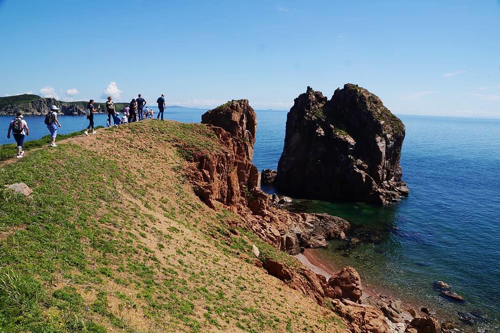 Выезд автобусом на остров Русский. Пешеходная прогулка к мысу Тобизина. В пути наблюдаем красивые панорамы, обрывистые скалы, каменные глыбы, уходящие в море, руины военных зданий. Протяженность маршрута туда и обратно около 8 км! Для активных и спортивных туристов.
