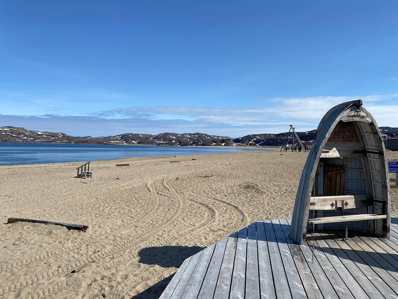 Мы сделаем остановку на песчаном пляже у ресторанов Териберки, где можно покачаться на огромных качелях прямо у моря. Здесь же можно увидеть выброшенный на песок старый рыболовецкий корабль и посмотреть скелет кита, который использовали в съемках фильма «Левиафан».