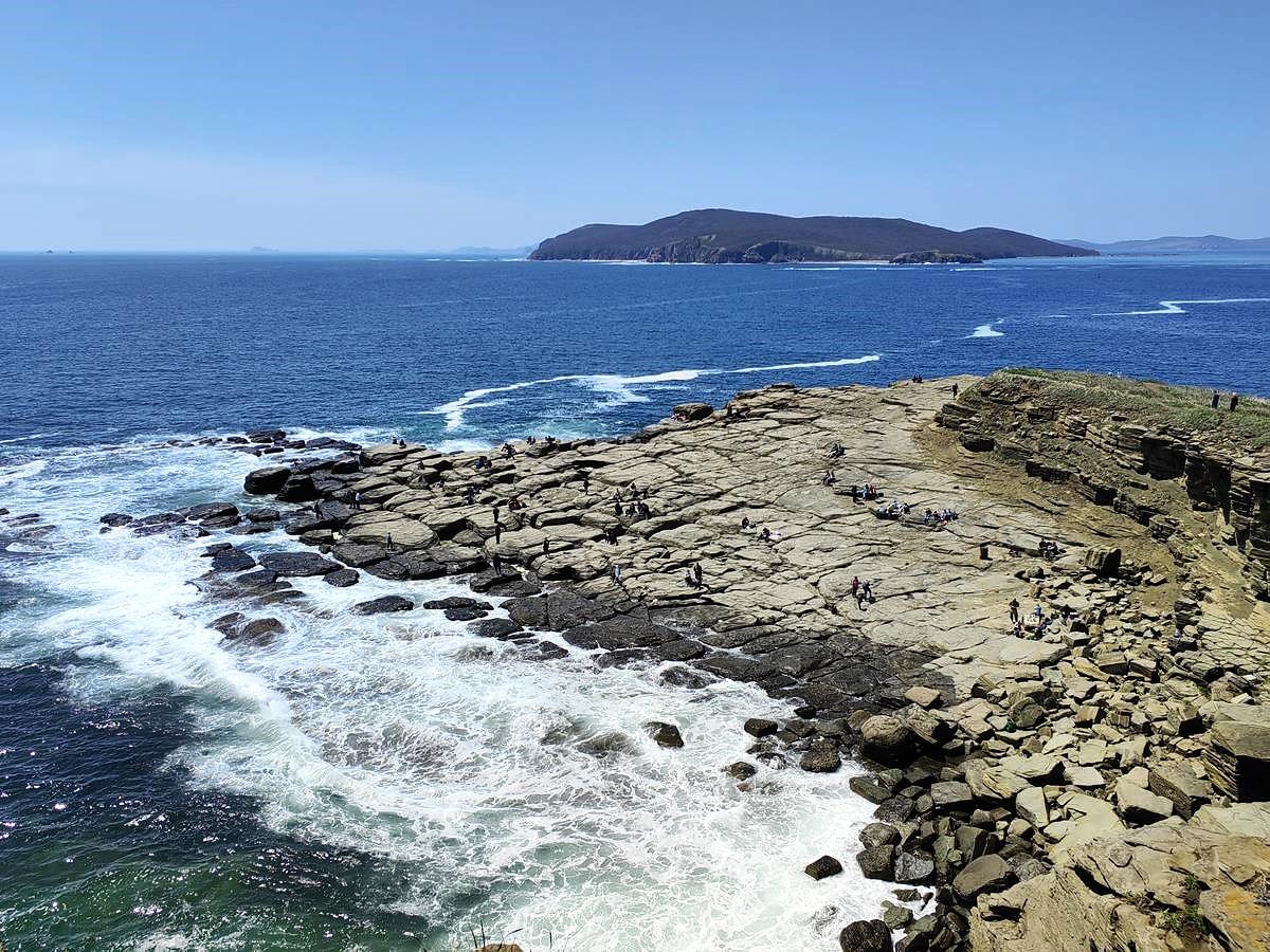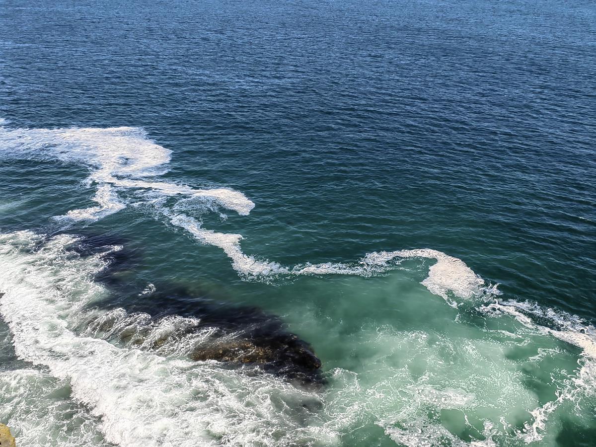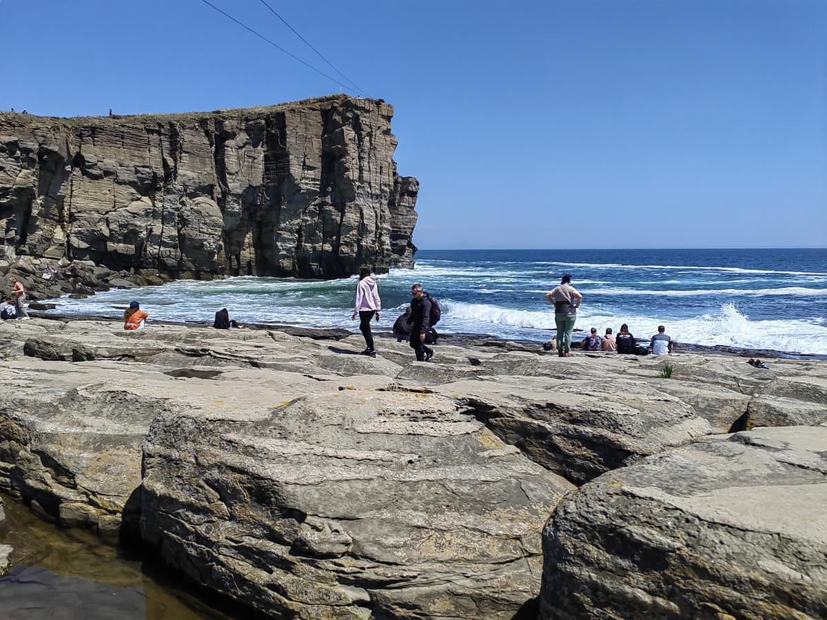 В пути наблюдаем красивые панорамы, обрывистые скалы, каменные глыбы, уходящие в море, руины военных зданий. Протяженность маршрута туда и обратно около 8 км.