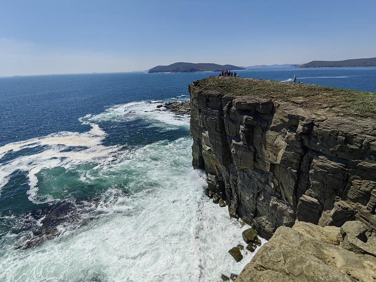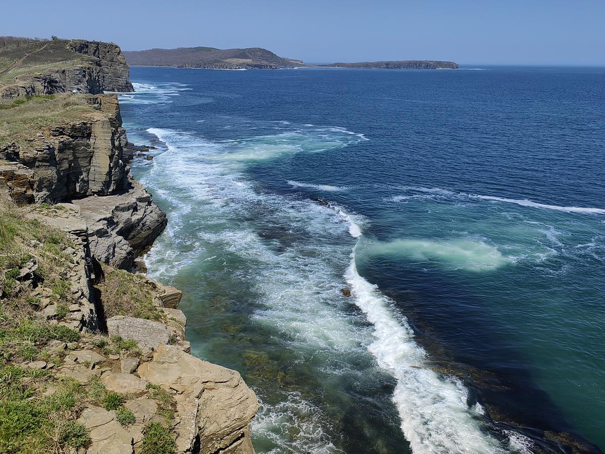 Мыс на острове Русский. Красивые панорамы, обрывистые скалы, каменные глыбы, уходящие в море... Нужна спортивная одежда и обувь.