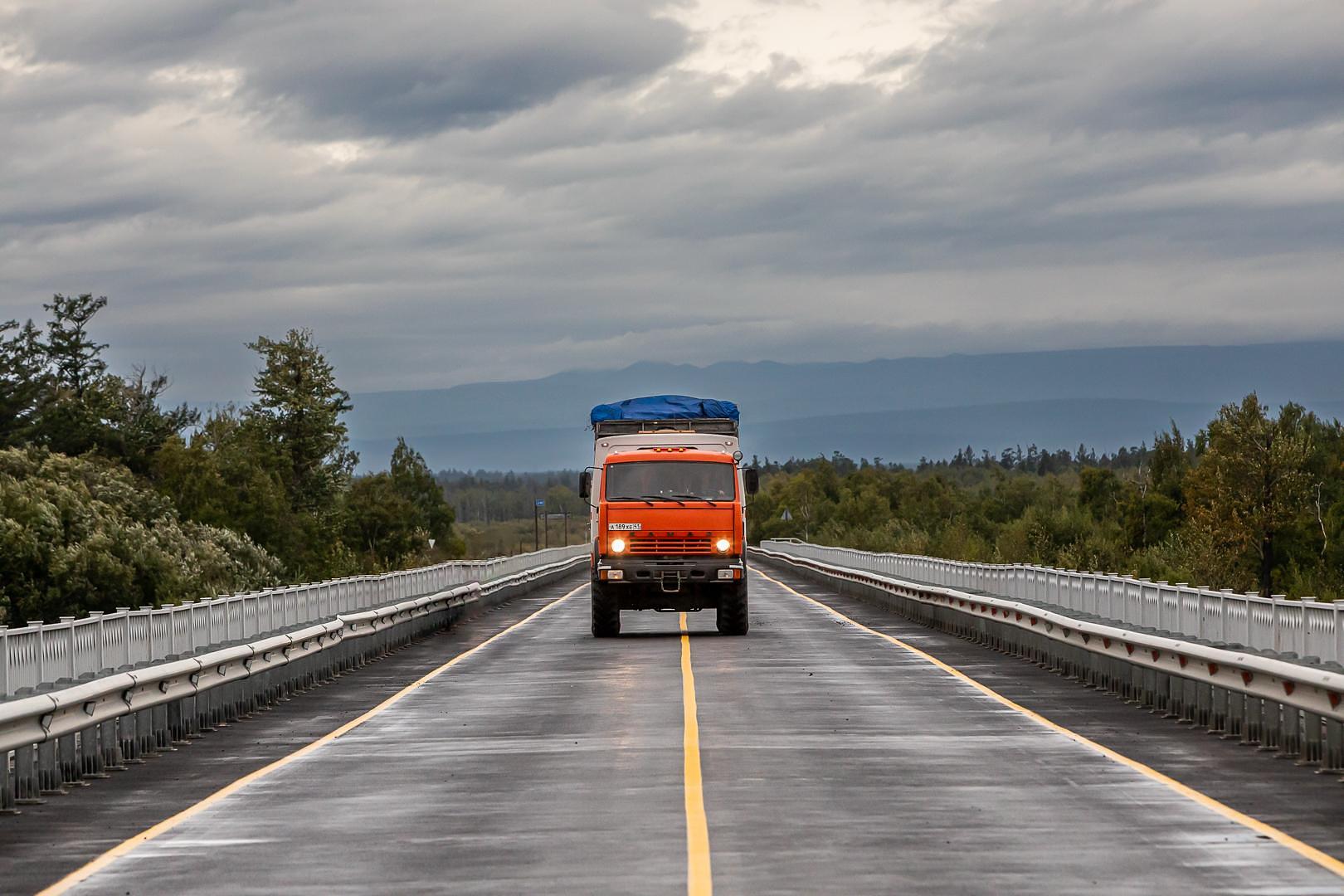 Переправа по мосту через самую крупную реку полуострова - Камчатку.