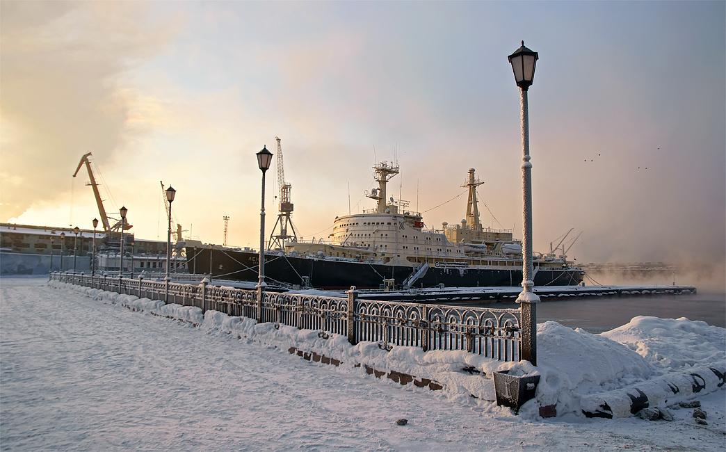 Далее мы отправимся к Мурманскому морскому порту, где вы сможете увидеть первый в мире атомный ледокол «Ленин».