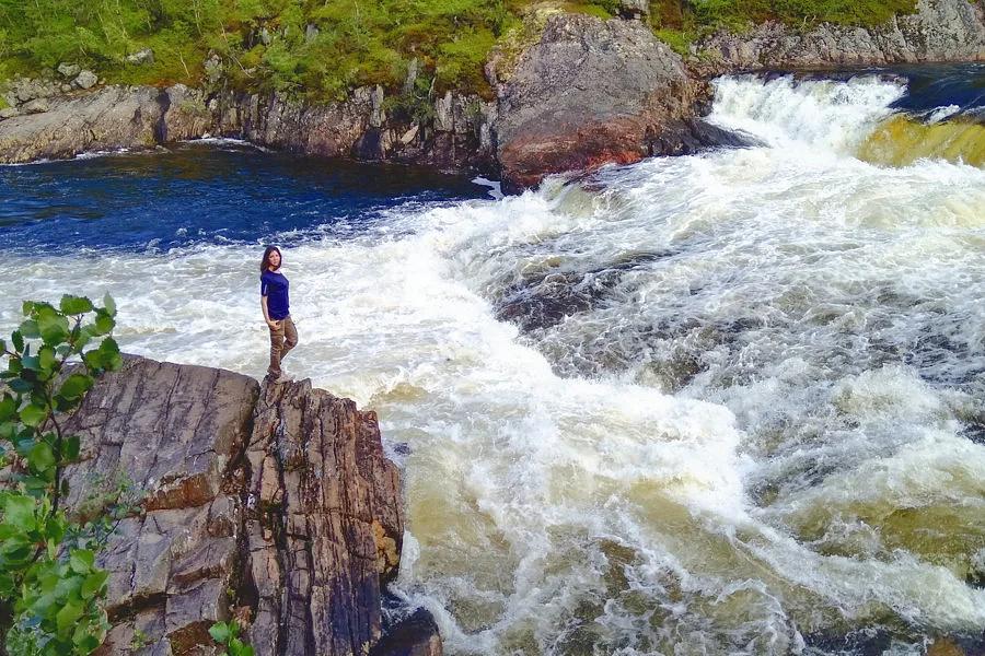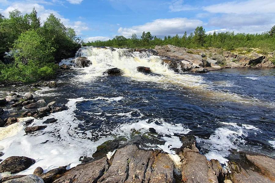 Прибытие на второй водопад на реке Титовка, осмотр Мельничного водопада - одного из самых красивых водопадов Кольского полуострова.
