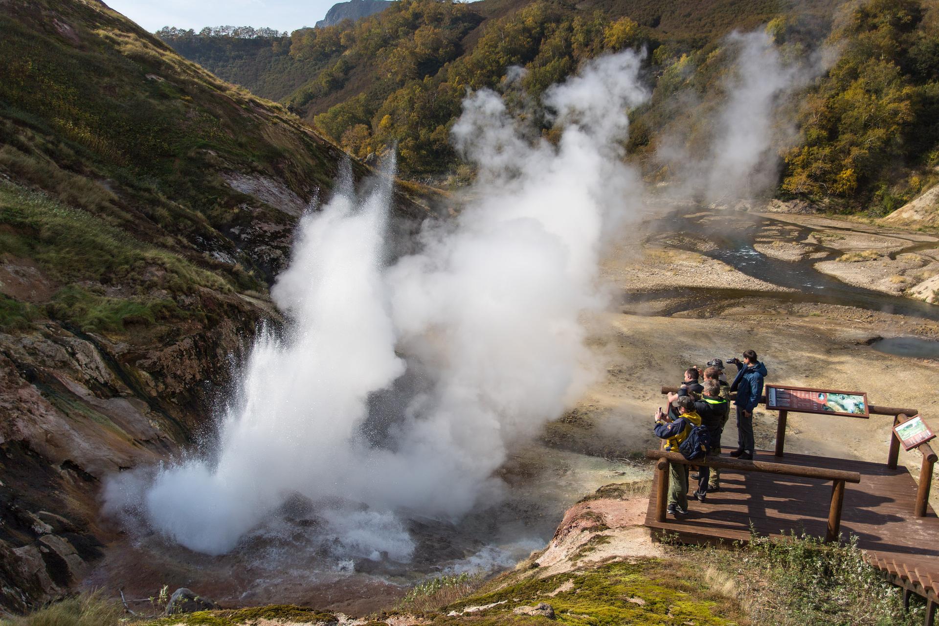 Сама Долина представляет собой поле, крупнейшее в Евразии, где фонтанируют гейзеры и бурлят разноцветные котлы.
