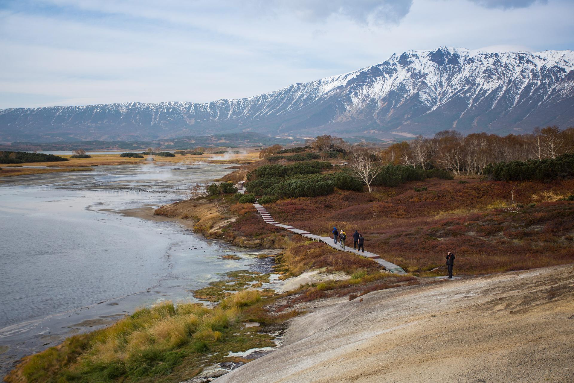 После мы перелетим в знаменитую кальдеру вулкана Узон: вы будете фотографироваться и рассматривать инопланетные пейзажи, состоящие из озёр кипятки, горячих источников и фумарол.