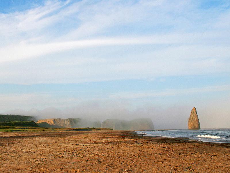 После Охотска промчитесь по берегу моря, потом сквозь сахалинскую тайгу через перевал и вот уже перед вами взмывают ввысь величественные каменные арки, колонны и кекуры-исполины, созданные ветром и морскими волнами. Красивейшие бухты и гроты, птичьи базары.