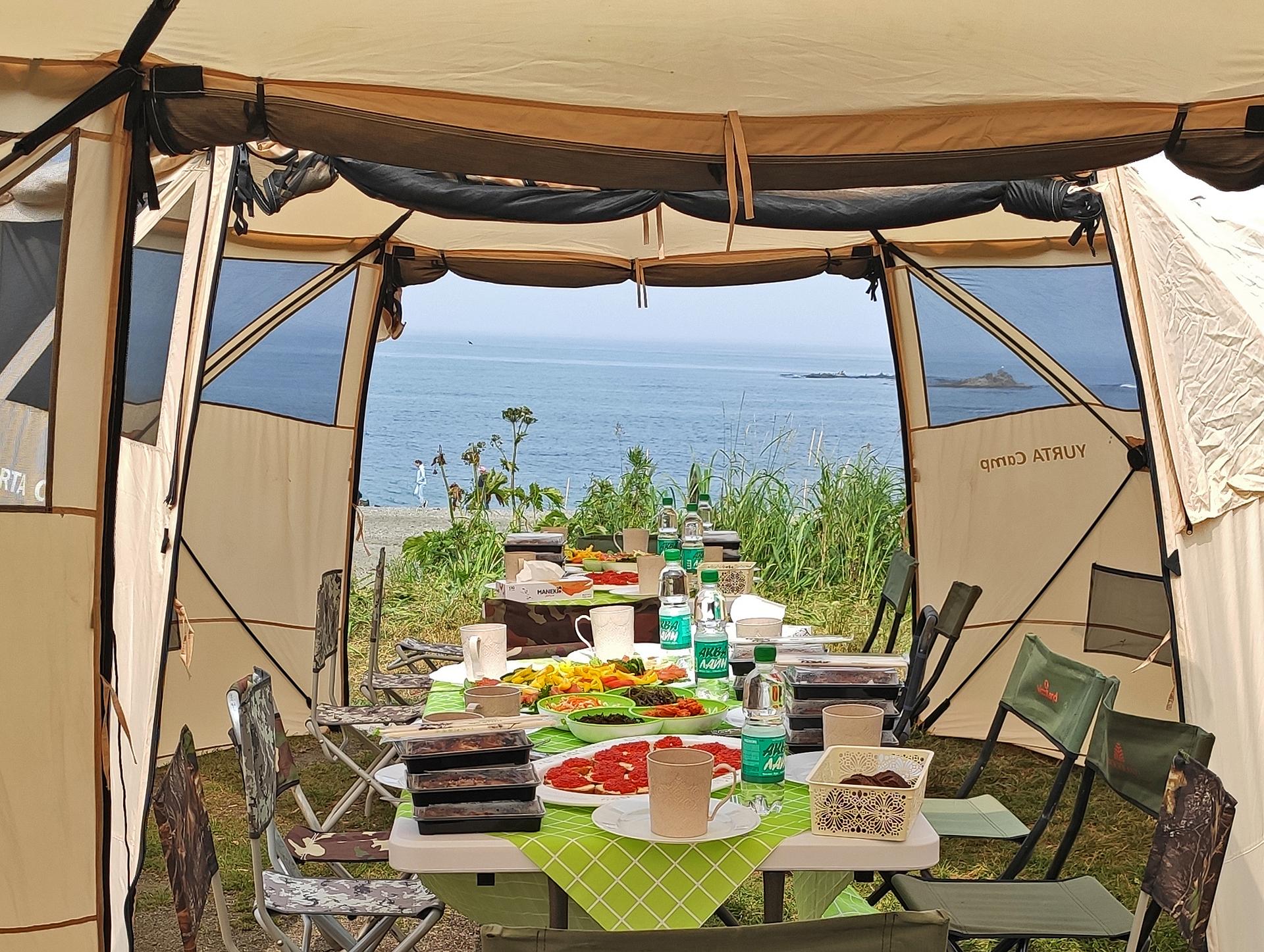 В литоральных лагунах много морских ежей. Далее 2 км по берегу до места стоянки, где будет организован костровой обед – вкуснейшая уха. Общий километраж пешей части маршрута 6 км.