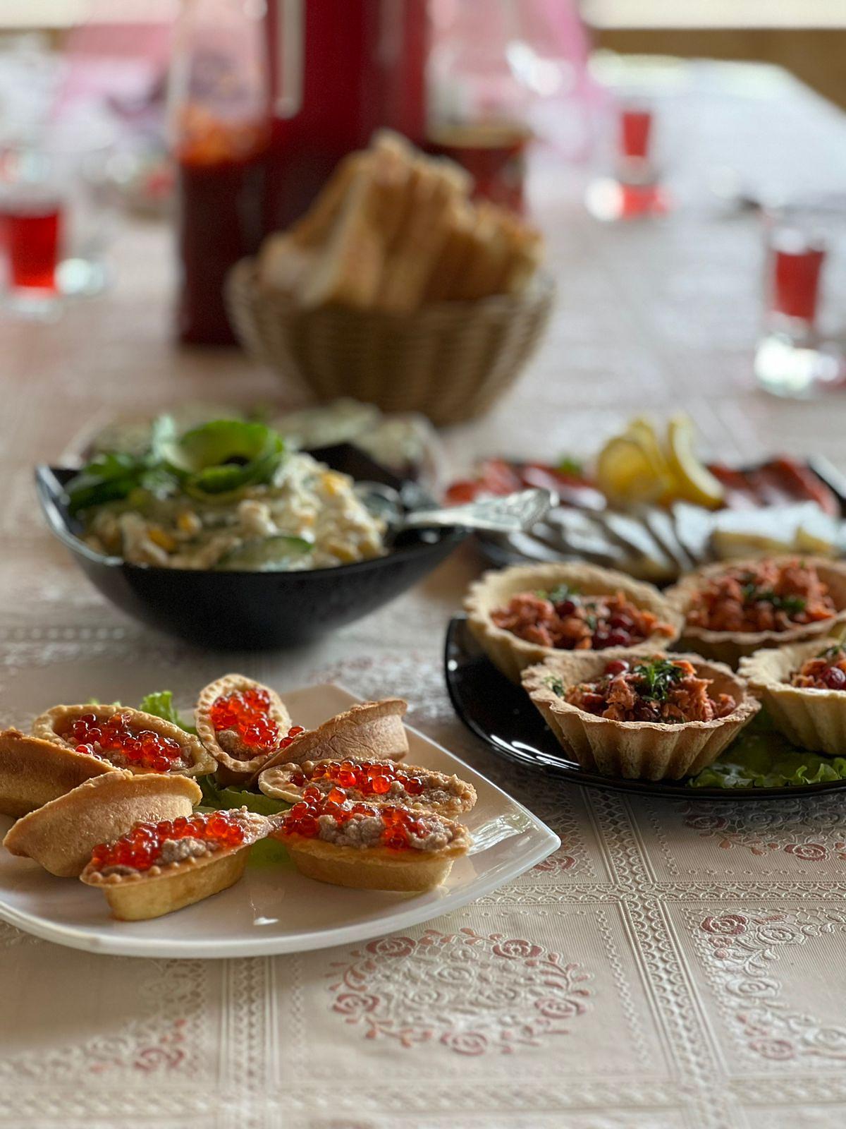 На рыболовной оборудованной базе нас ждет вкусный обед из камчатских локальных продуктов.
