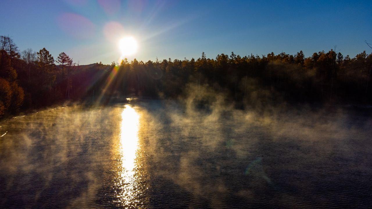 В Амурской области есть несколько мест, где расположены карстовые пещеры. Там через глубинные разломы земной коры на поверхность выходит тёплый воздух. Зимой, когда пещеры покрыты снегом, дыхание Земли видно наиболее отчётливо.
