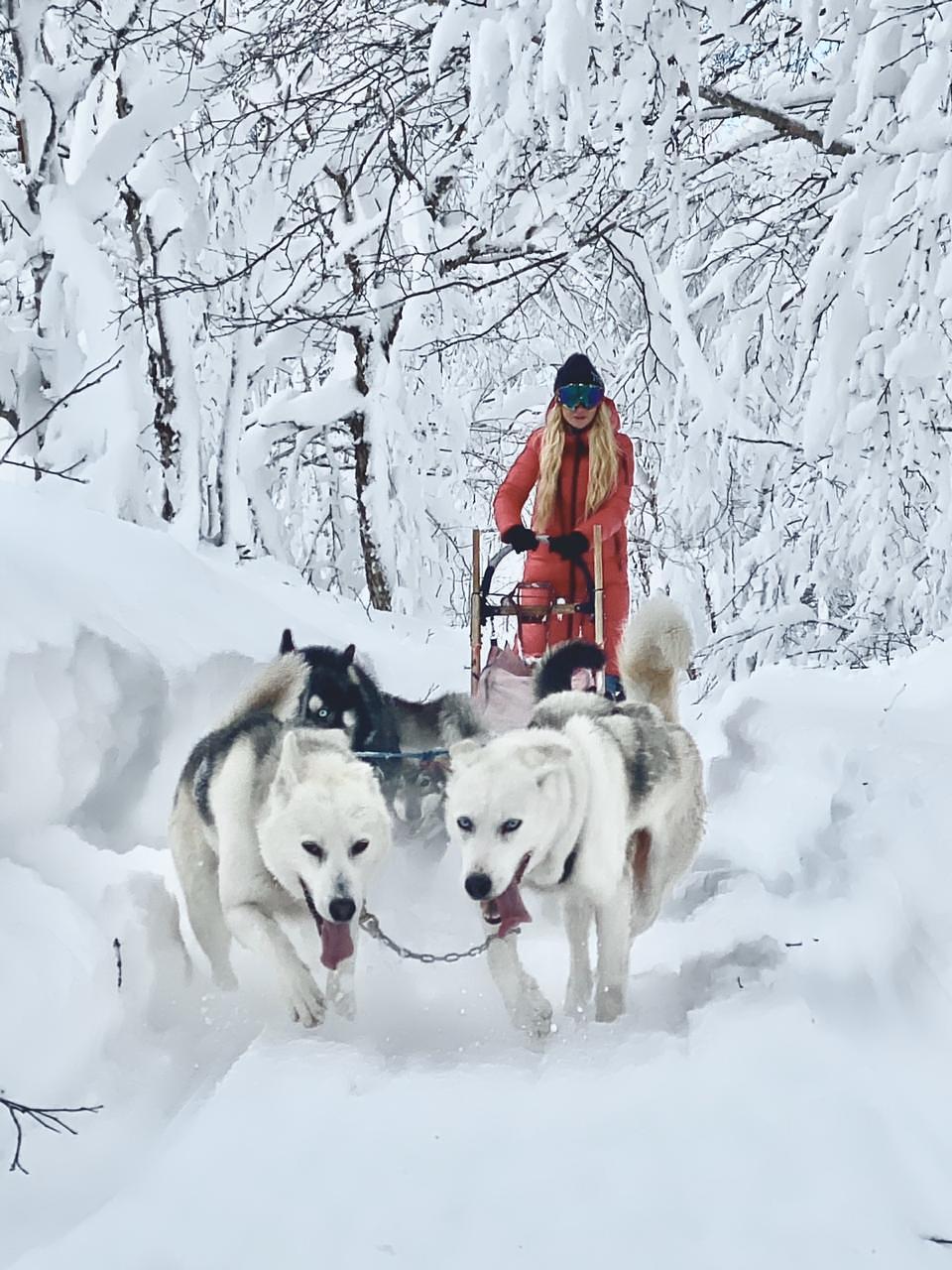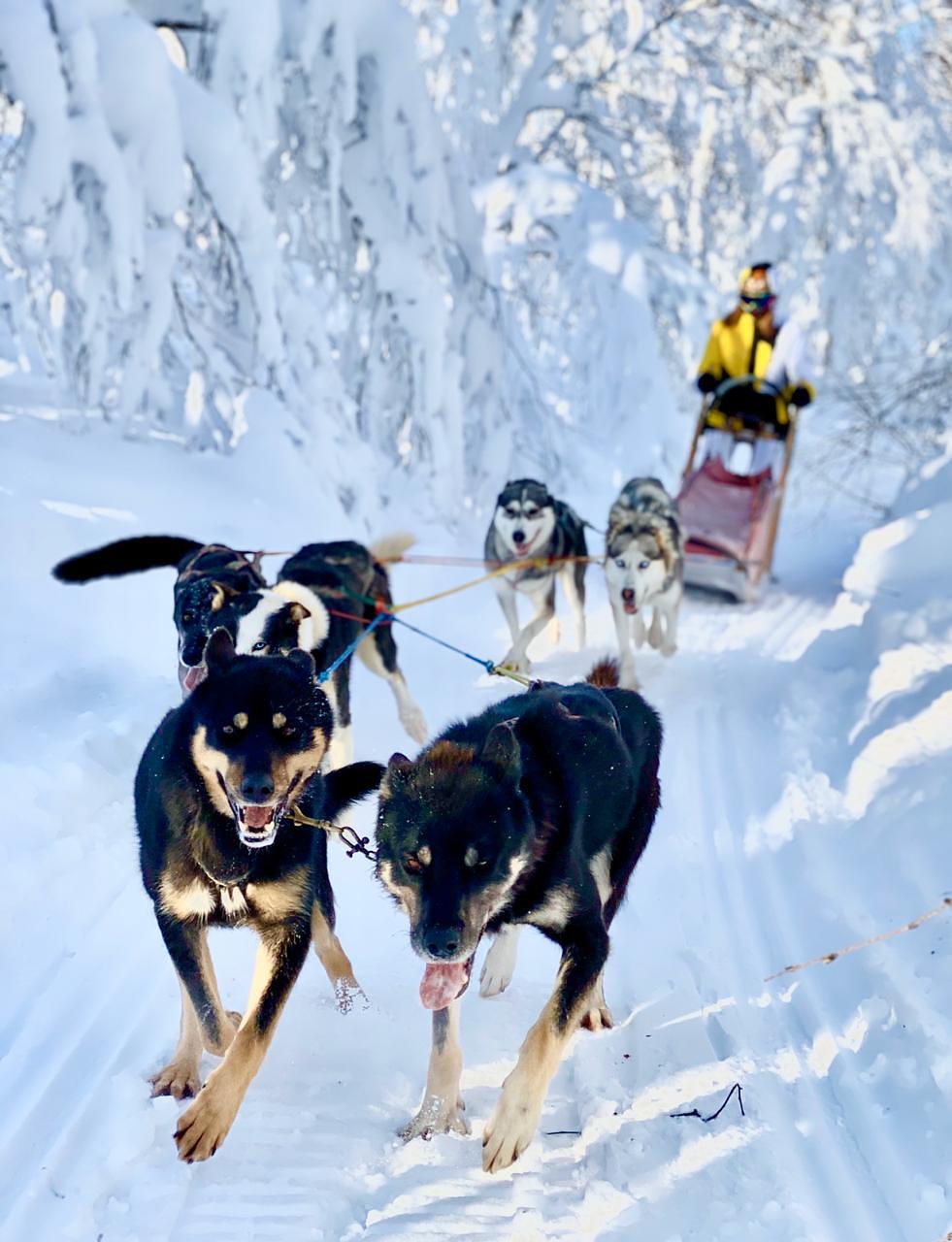 • Катание на собачьих упряжках по лесу. Все гости поочередно меняются в управлении.