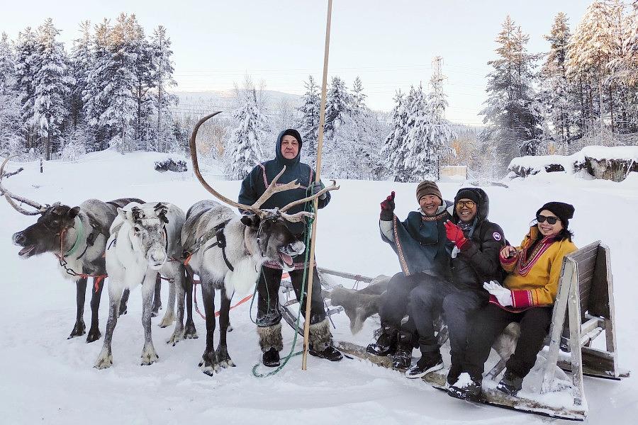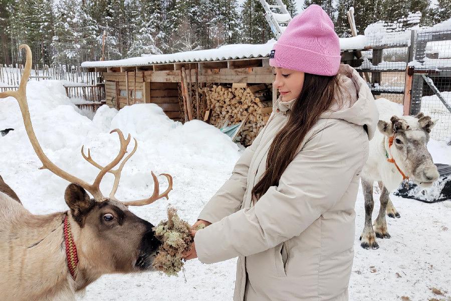 11:00 - Прибытие. Посещение самого большого чума в России, истории и легенды о коренных народах Крайнего севера у очага, активные спортивные игры, кормление северных оленей, общение с хаски и ручными кроликами, катание в оленьей упряжке.