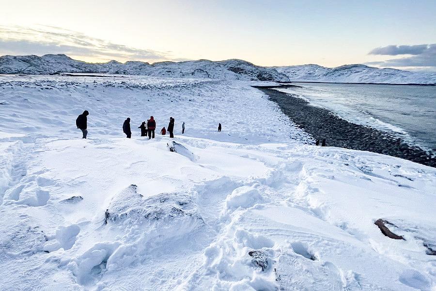 13:30 - Продолжение экскурсии. Мы сделаем остановку на кладбище заброшенных кораблей, затопленных в небольшой бухте, в санях за снегоходом совершим поездку к побережью и замерзшему водопаду, впадающему в Северный Ледовитый океан. Сделаем великолепные селфи на обрыве отвесной скалы, уходящей в морскую пучину.