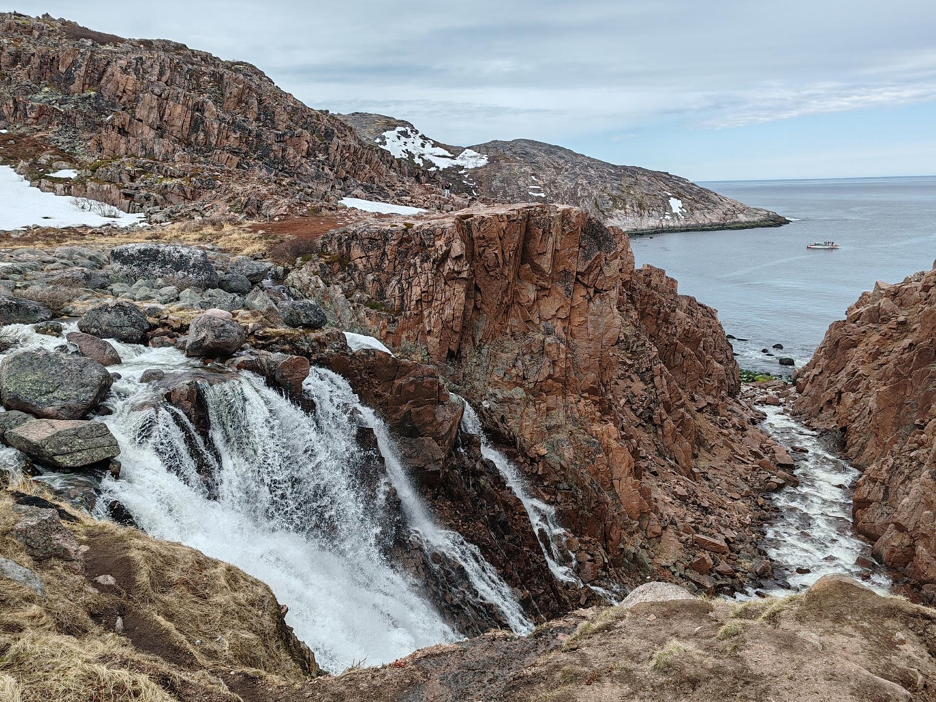 - водопад, уходящий прямо в океан,