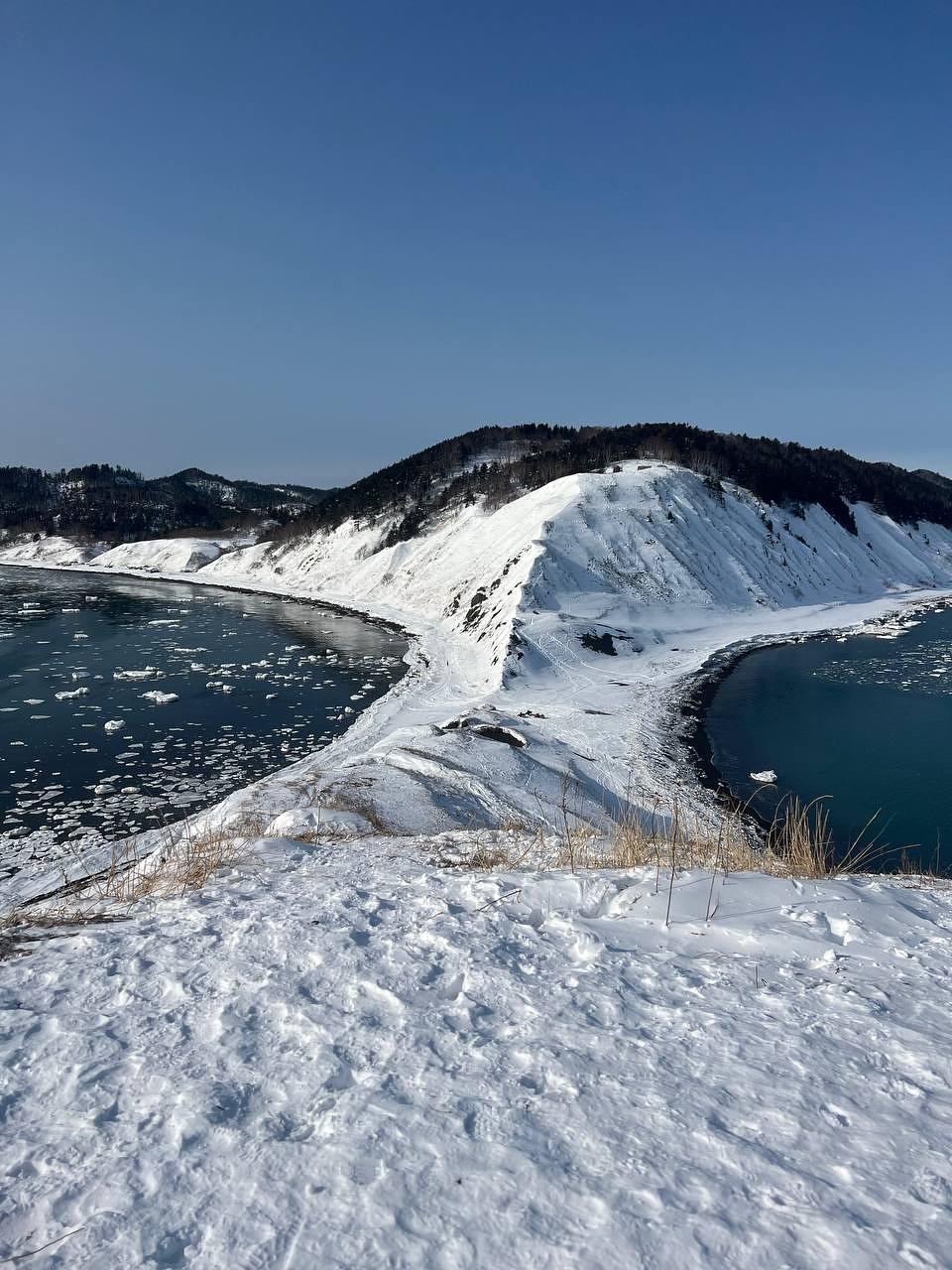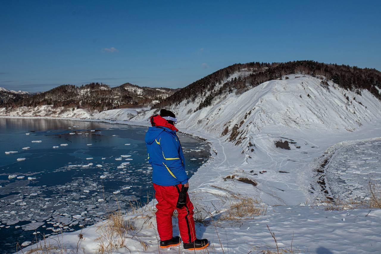 животных. Пьянящий морозный воздух, и звенящая тишина во время остановок, не оставят вас равнодушными. Ну и конечно сам мыс, величаво и горделиво стоящий на берегу замёрзшего Охотского моря. Горячий чай и вкусные перекус придадут сил и помогут согреться. И вперёд! На вершину мыса! И те, кто побывал на нём впервые, и те, кто был на нём летом восхитятся его зимней красотой!