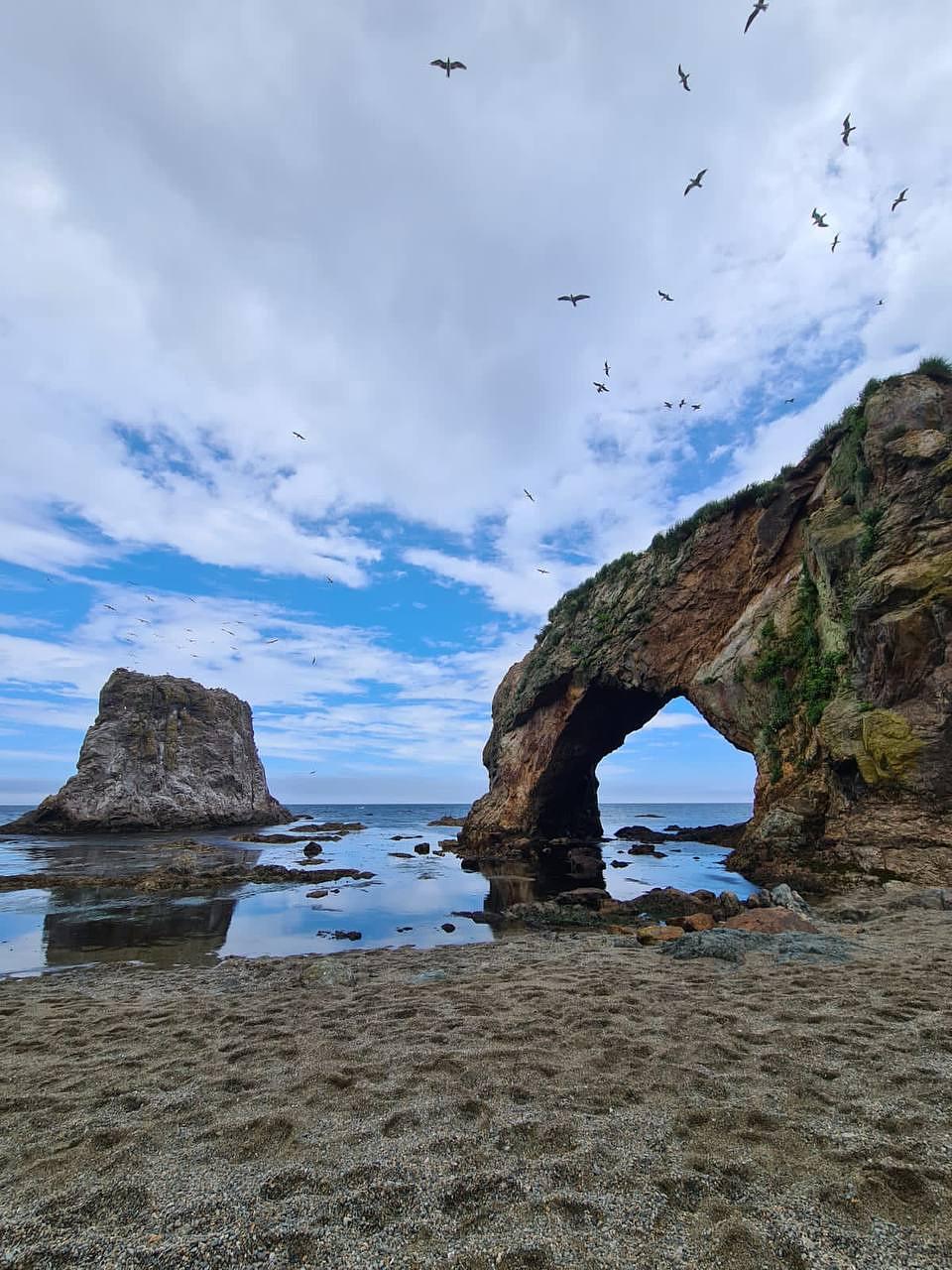 11:00 Прибытие к Мысу Птичьему. Вас ждёт увлекательная прогулка в сопровождении гида к каменным аркам мыса, где вы сможете сделать потрясающие фото. Далее вы пройдёте к мысу Великан через лес, который многие называют «Лес фей» с завораживающий красотой и разнообразной природой.
