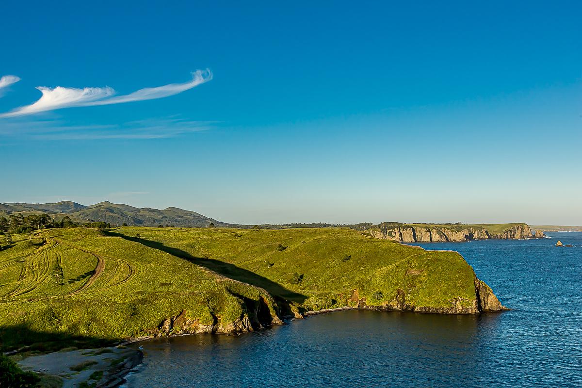 Сегодня мы отправимся в путешествие к самому знаковому месту острова Шикотан – мысу Край Света. Узкий скалистый язык уходит далеко в Тихий океан, и, стоя на его оконечности, вы понимаете, что впереди нет ничего, вплоть до самой Северной Америки.