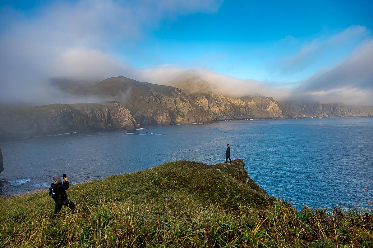 В хорошую погоду мы увидим и соседние острова – Кунашир с вулканами Тятя и Менделеева, а также соседние острова Малой Курильской гряды: остров Зеленый, острова Лисьи и остальные самые ближайшие к Японии российские острова.