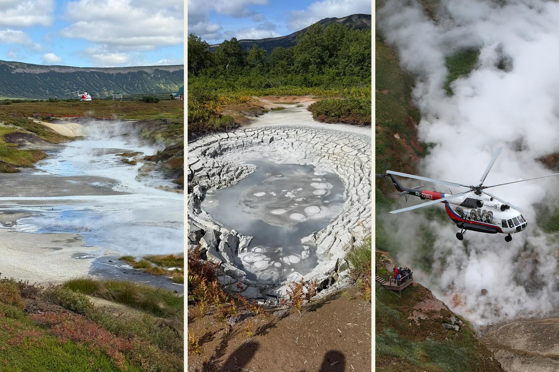 Недалеко от Долины гейзеров находится кальдера вулкана Узон, не менее впечатляющее и удивительное место. Кальдера образовалась в результате обрушения стенок древнего вулкана, на ее дне очень ярко проявляется гидротермальная деятельность.