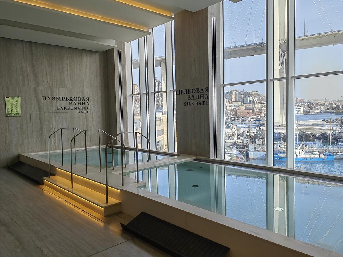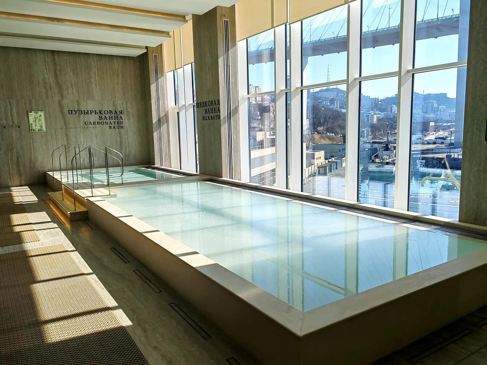 Сразу после заселения - бесшовный переход в акватермальную зону SPA. Мы гарантируем, что контраст между ледяным морем и теплом отеля будет максимально расслабляющим и восстанавливающим. Впечатляющий 25-метровый бассейн, минеральные ванны в стиле «онсэн», хаммам и сауна с умопомрачительными видами на бухту Золотой рог. GRAND SPA – крупнейший в городе спа-центр премиум-класса (общая площадь - около 1 700 кв.м) работает для гостей отеля с 7 до 23 часов. Главное правило: полное расслабление, наслаждение моментом и забота о себе! Пусть ваша душа согреется во Владивостоке! Не забудьте положить купальник в багаж!