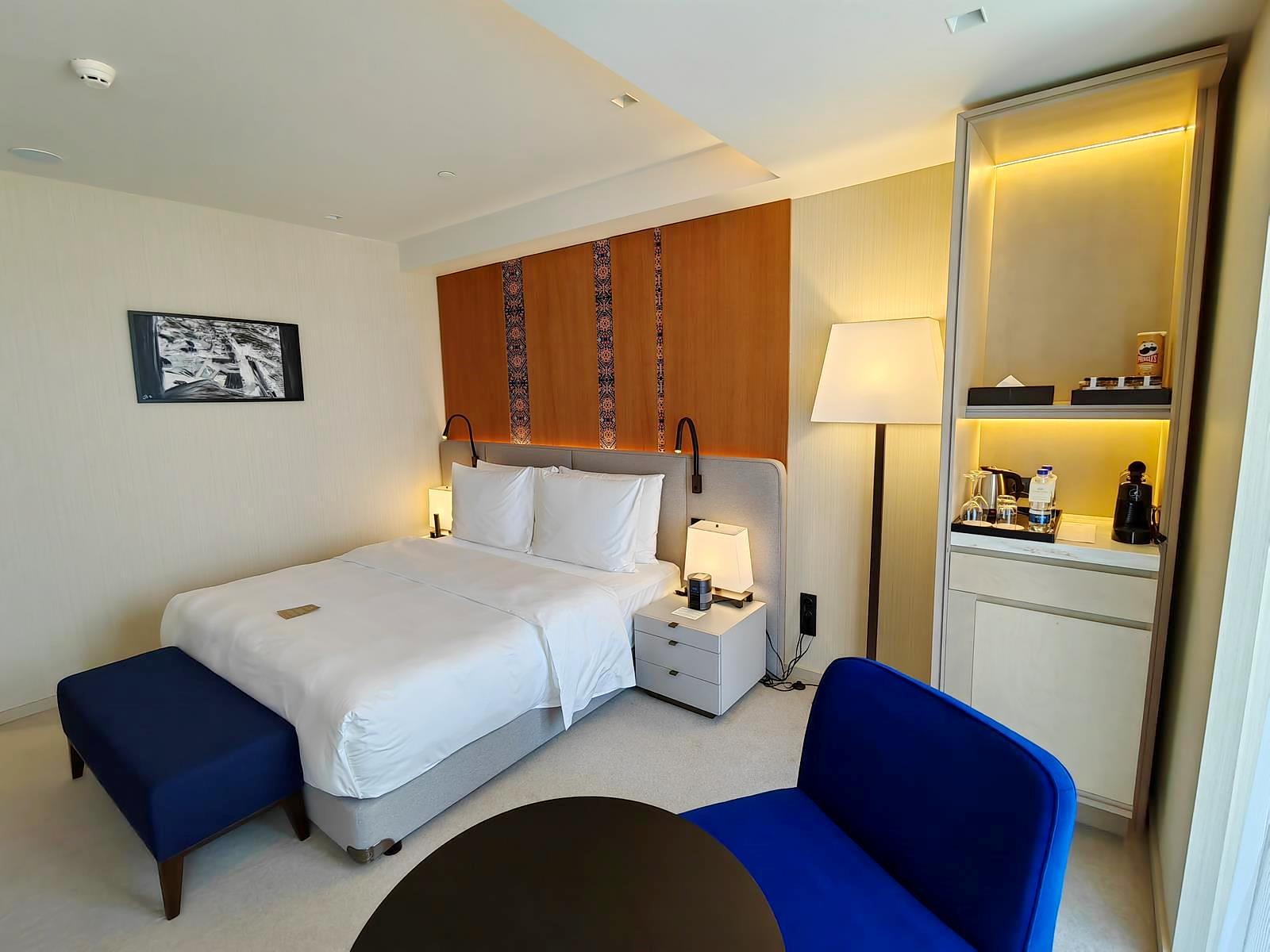 Уютный номер с панорамными окнами, открывающими вид на рельефные пейзажи города и колоритные набережные Владивостока. Номер оборудован технологичной системой «умный дом», позволяет управлять климатом и освещением номера. В номере располагается ванна и зона с термостатическим тропическим душем и подогреваемым полом, для гостей предлагаются косметические принадлежности премиального бренда, высокоскоростной Wi-Fi, капсульная кофемашина, коллекция чая, мини-бар, сейф.