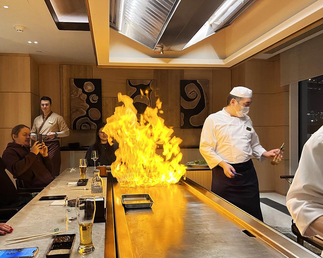 В 20 часов кульминация — ужин со звездой. Пятикурсное гастрономическое шоу в ресторане Teppanyaki Grill. Вы станете зрителем шедевра японской кухни, созданного прямо на ваших глазах шеф-поваром Акирой Кусуми (обладателем звезды «Мишлен»). Это не ужин, это коллекционное событие для гурманов.