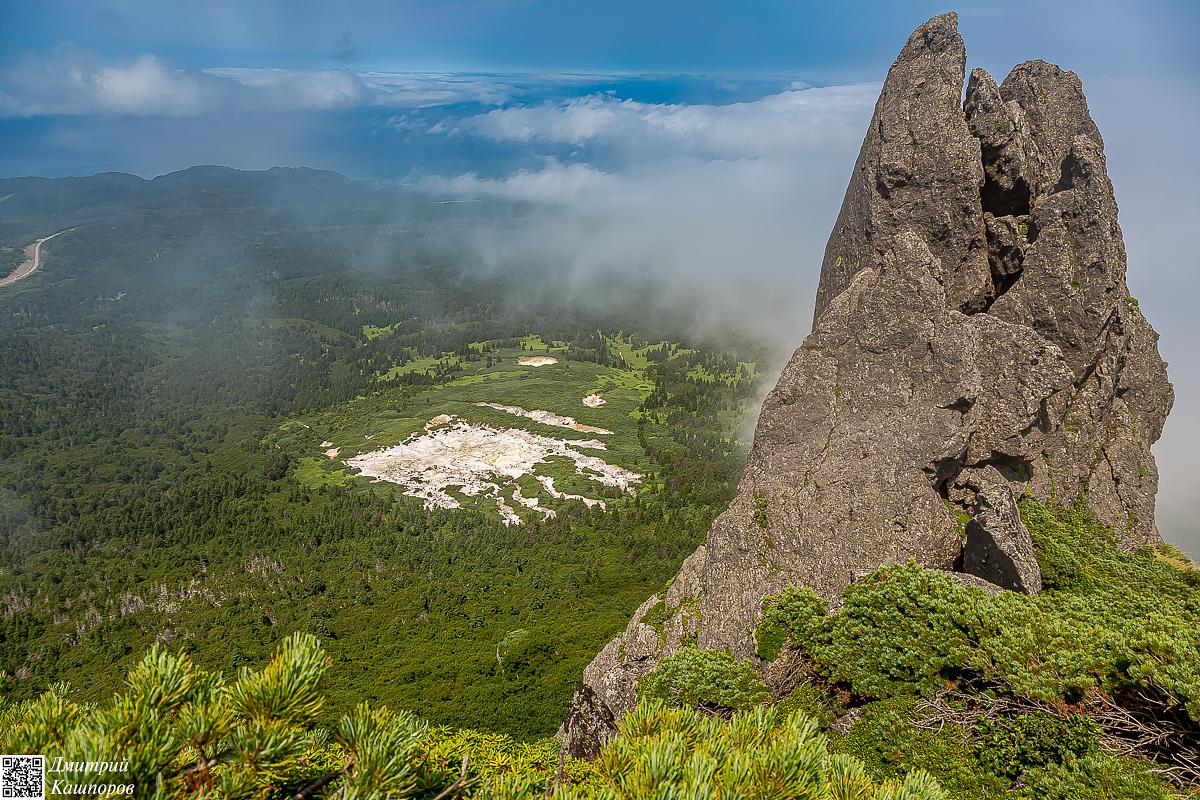 Достигнув кромки вершинного кратера, вы почувствуете колоссальную энергию планеты. Перед вами откроется гигантский кратер вулкана, внутри которого до сих пор сохранилась вулканическая активность. Виды, открывающиеся с вершины Тяти, невозможно передать словами – это точка, где вы чувствуете себя на вершине мира. С вершины вулкана открываются великолепные виды на весь остров Кунашир, Итуруп, Хоккайдо и Шикотан.