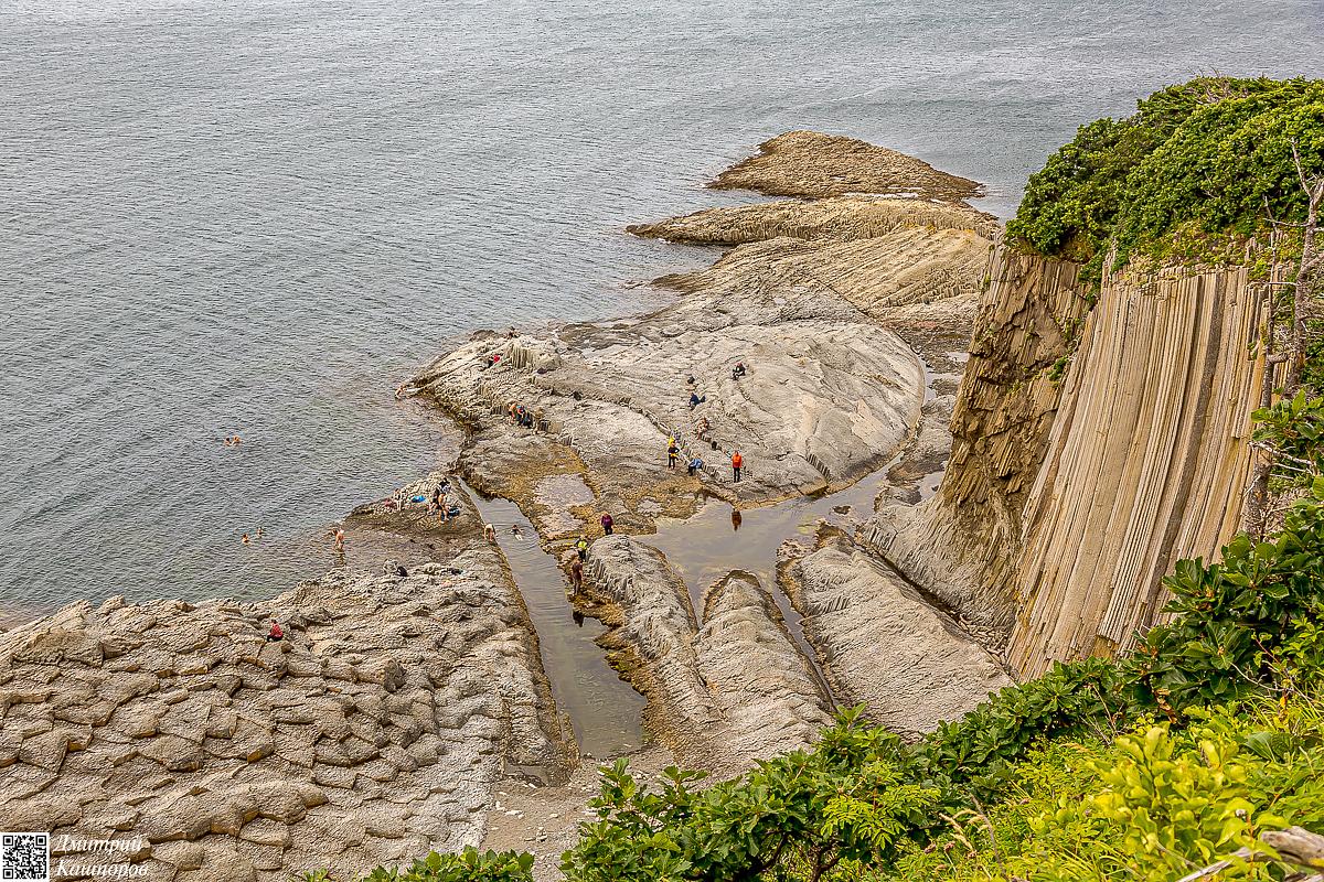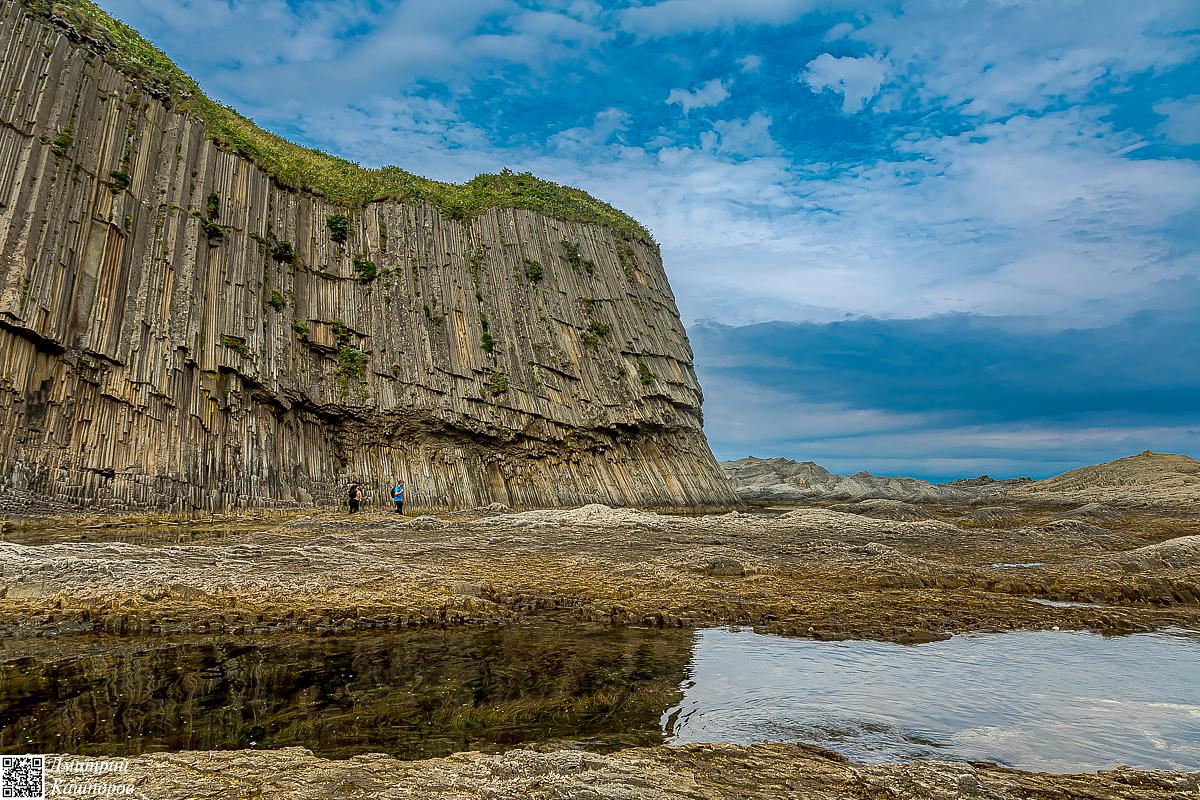 Сегодня мы отправимся на самое известное место острова Кунашир – мыс Столбчатый. Этот объект является визитной карточкой острова. Мыс представляет собой уникальный природный памятник, созданный миллионы лет назад вулканом Менделеева. В результате очень медленного застывания вязкой лавы образовались гигантские пяти- и шестигранные риолитовые колонны. Эти отвесные скалы высотой до пятидесяти метров выглядят как рукотворное сооружение: в одном месте они напоминают трубы огромного церковного органа, в другом – идеально подогнанную мостовую, а в третьем – панцирь гигантской черепахи.