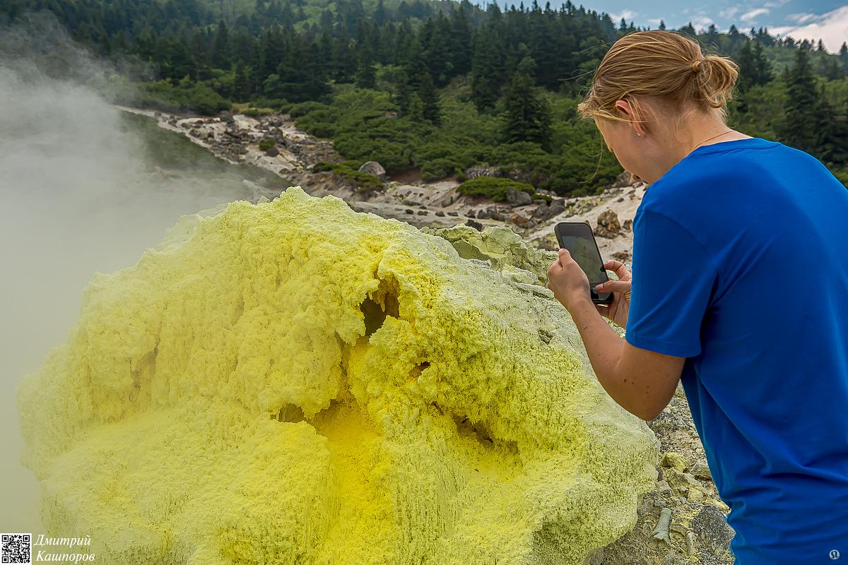 Наше приключение начнется с начала пешей тропы. Путь длиной около 3 километров займет примерно полтора часа и пролегает через экзотические заросли бамбучника выше человеческого роста. Вы увидите руины серного завода, сохранившиеся со времен, когда здесь велась промышленная добыча серы. Мы направляемся к знаменитым фумарольным полям, на которых расположены две самые мощные фумаролы Курильских островов ярко-желтого цвета, из которых с шумом вырывается вулканический газ, создавая ощущение пребывания на другой планете.