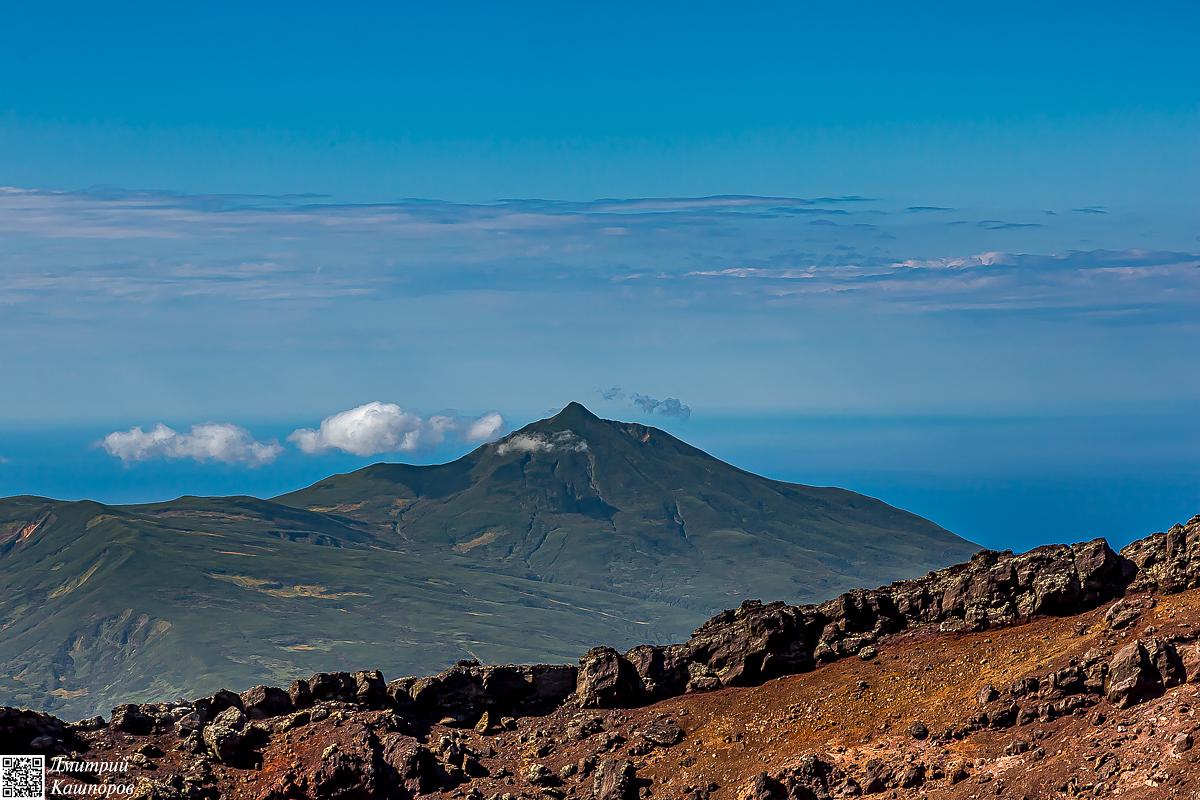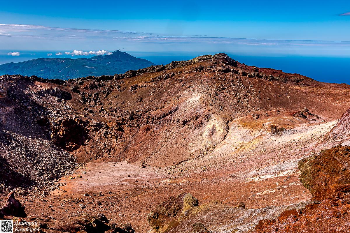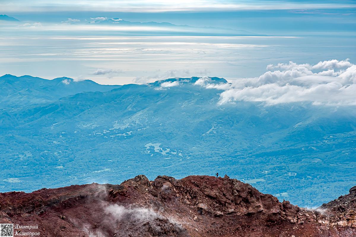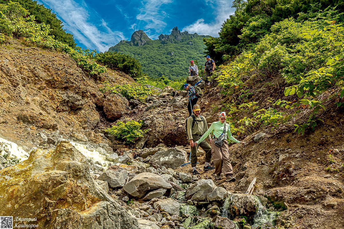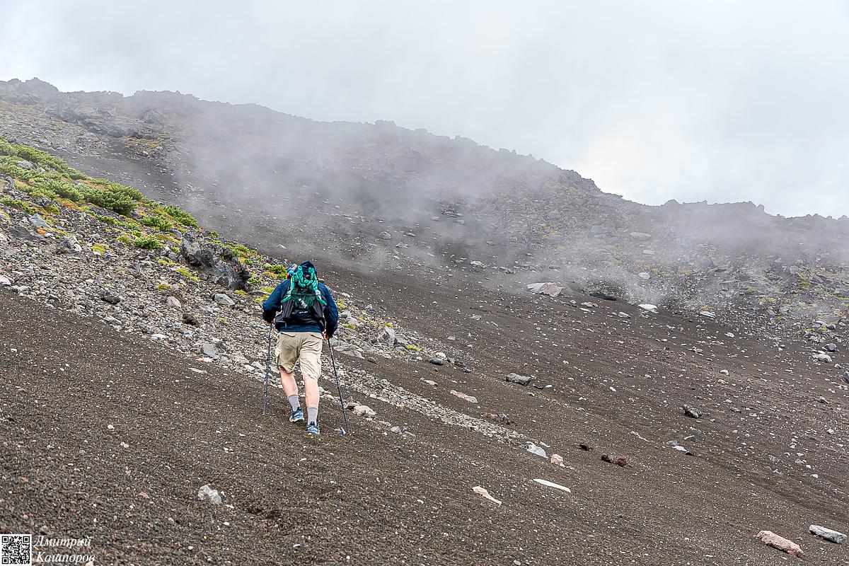 Осмотрев фумарольное поле, продолжаем наш путь дальше, на вершину вулкана. Тех, кто преодолеет этот сложный путь, ждет королевская награда – панорамный вид с высшей точки, откуда в ясную погоду как на ладони видны весь Кунашир, соседний Шикотан и берега японского острова Хоккайдо.