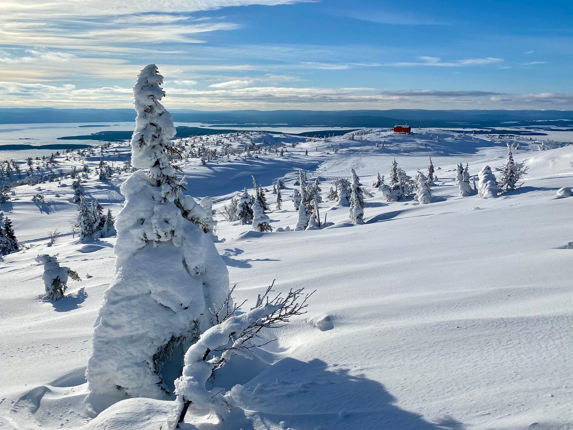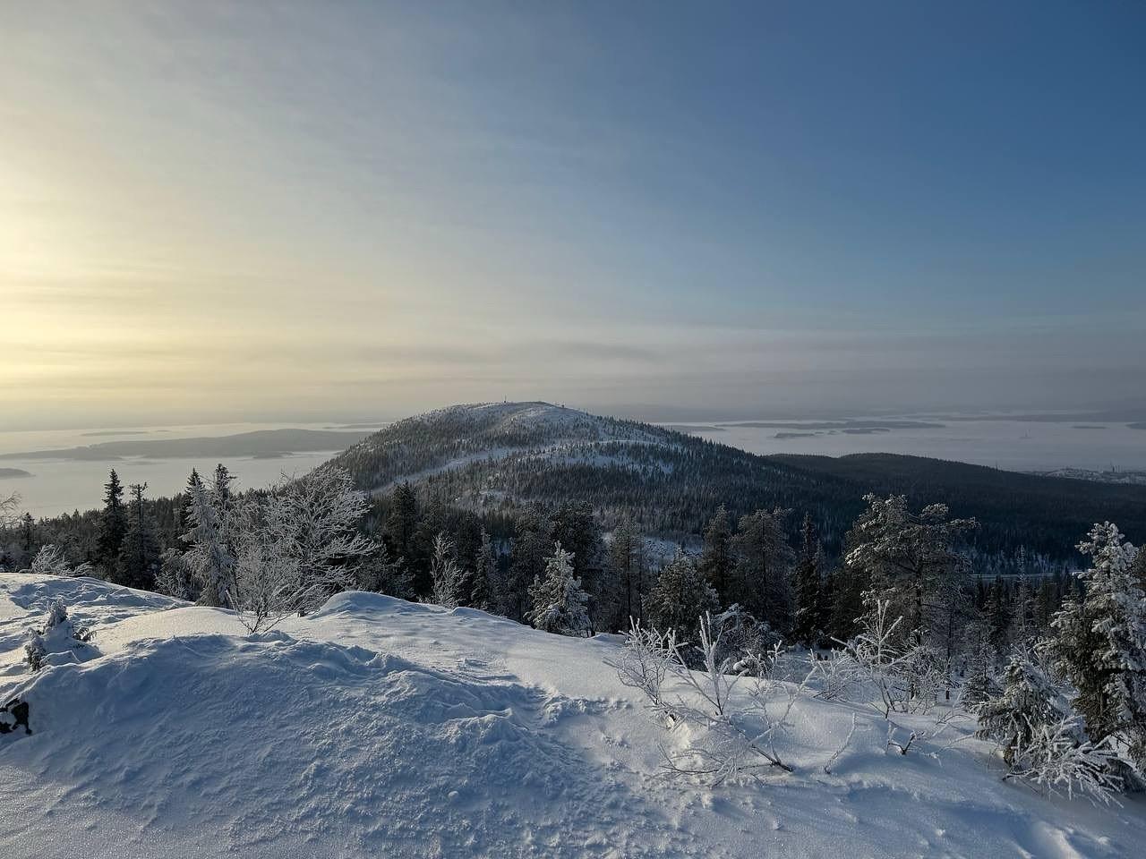 День начнется с пешего подъема на гору Волосяная (на снегоступах) — утренний маршрут с видами на окрестности Кандалакши и Белое море.