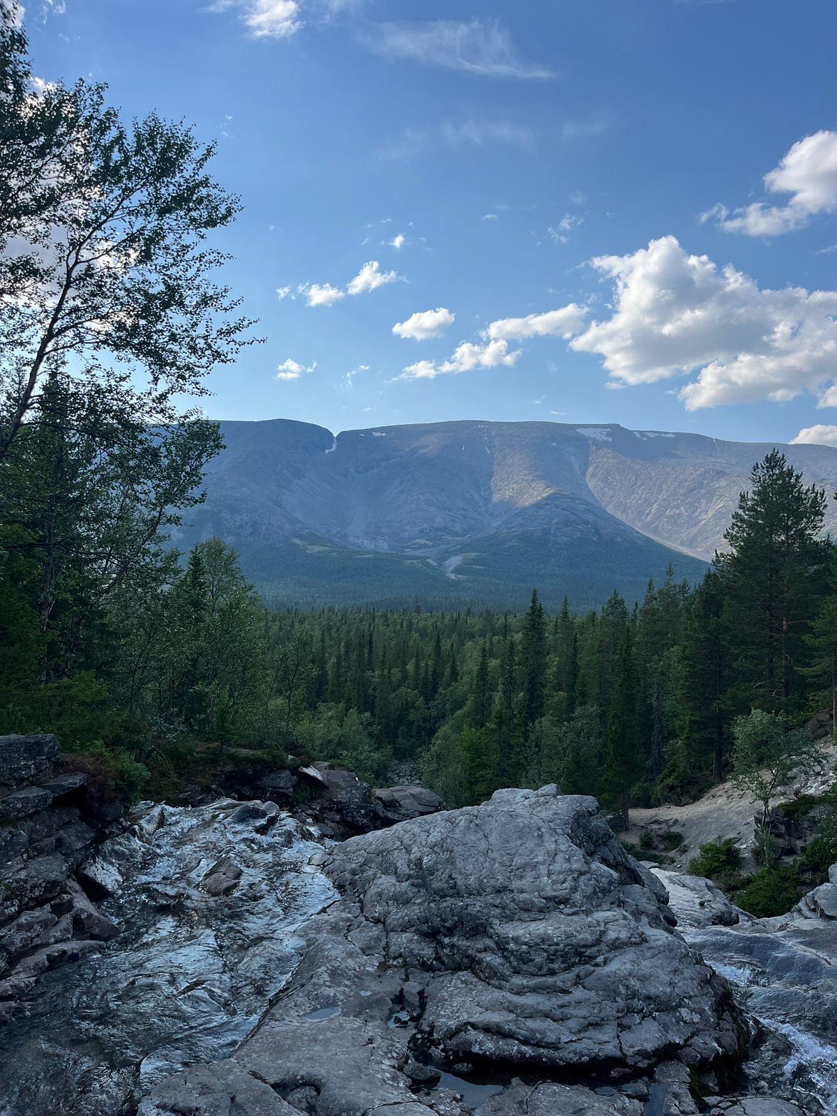 Расстояние 10 километров. В переводе с саамского языка название переводится как «горное озеро». Оно считается одной из жемчужин Кольского полуострова. По дороге увидим горную реку и каменистые склоны карьера.
