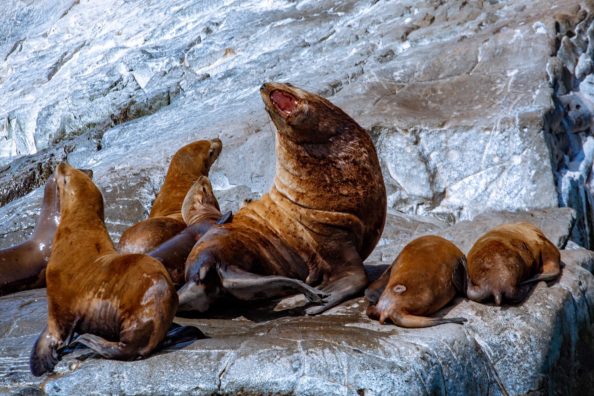 У входа в бухту Русская на мысе Кекурный находится лежбище сивучей. Здесь вы понаблюдаете за важными секачами, контролирующими свой гарем, резвящимся в воде любопытным молодняком.