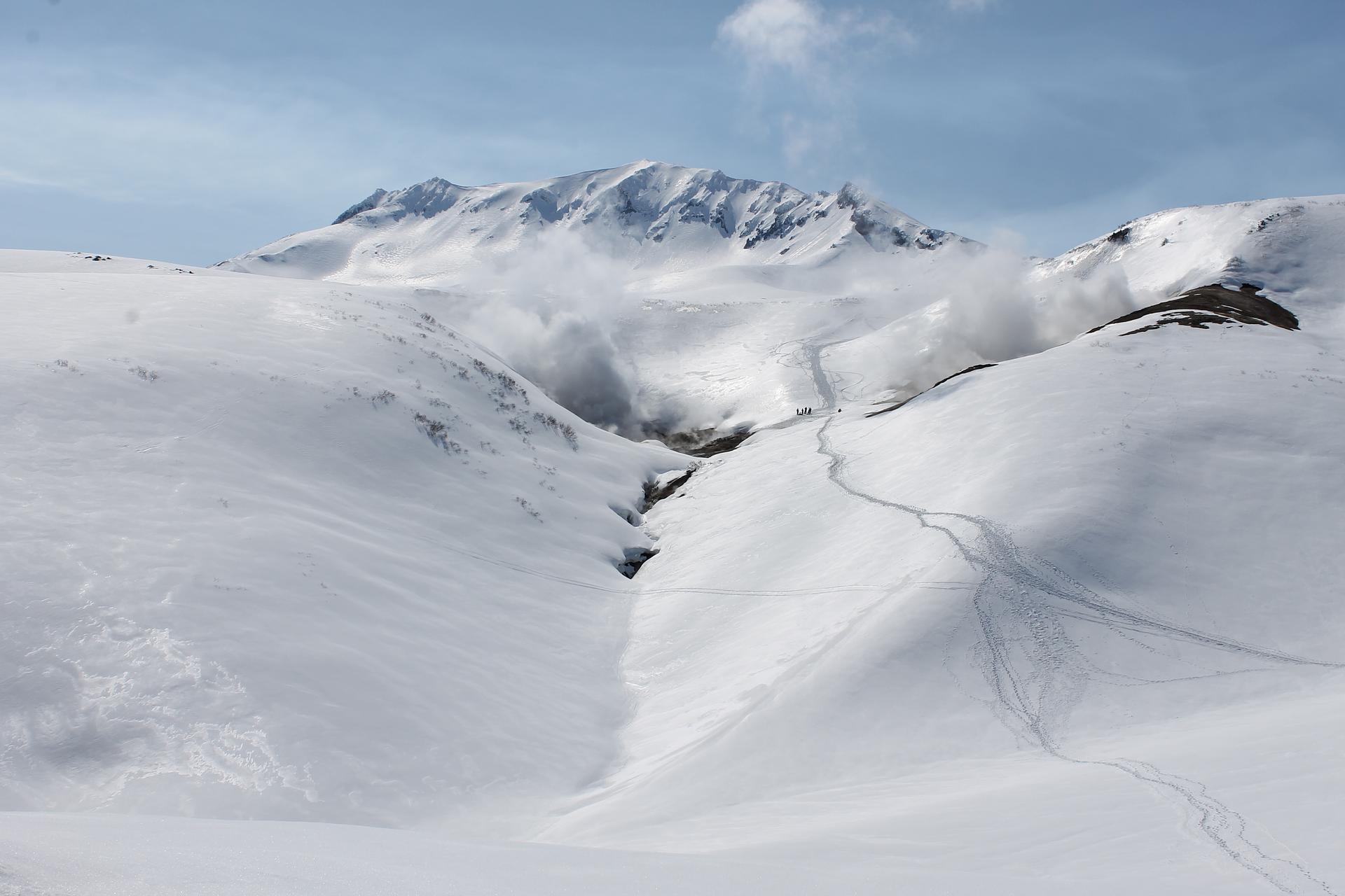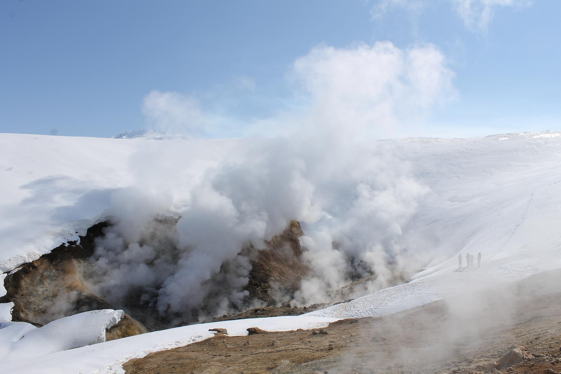 Переезд через перевал Пионерский к Дачным источникам, прогулка, осмотр фумарольной площадки