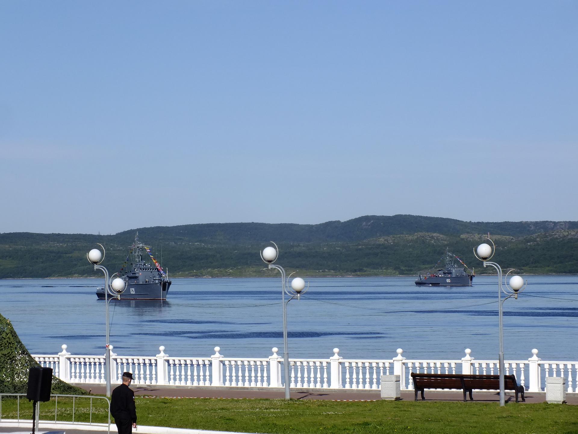 Приморская площадь служит главной сценой торжеств. Площадь расположена на набережной с прекрасным видом на Кольский залив, что позволяет зрителям наблюдать за сухопутной и морской частями парада.